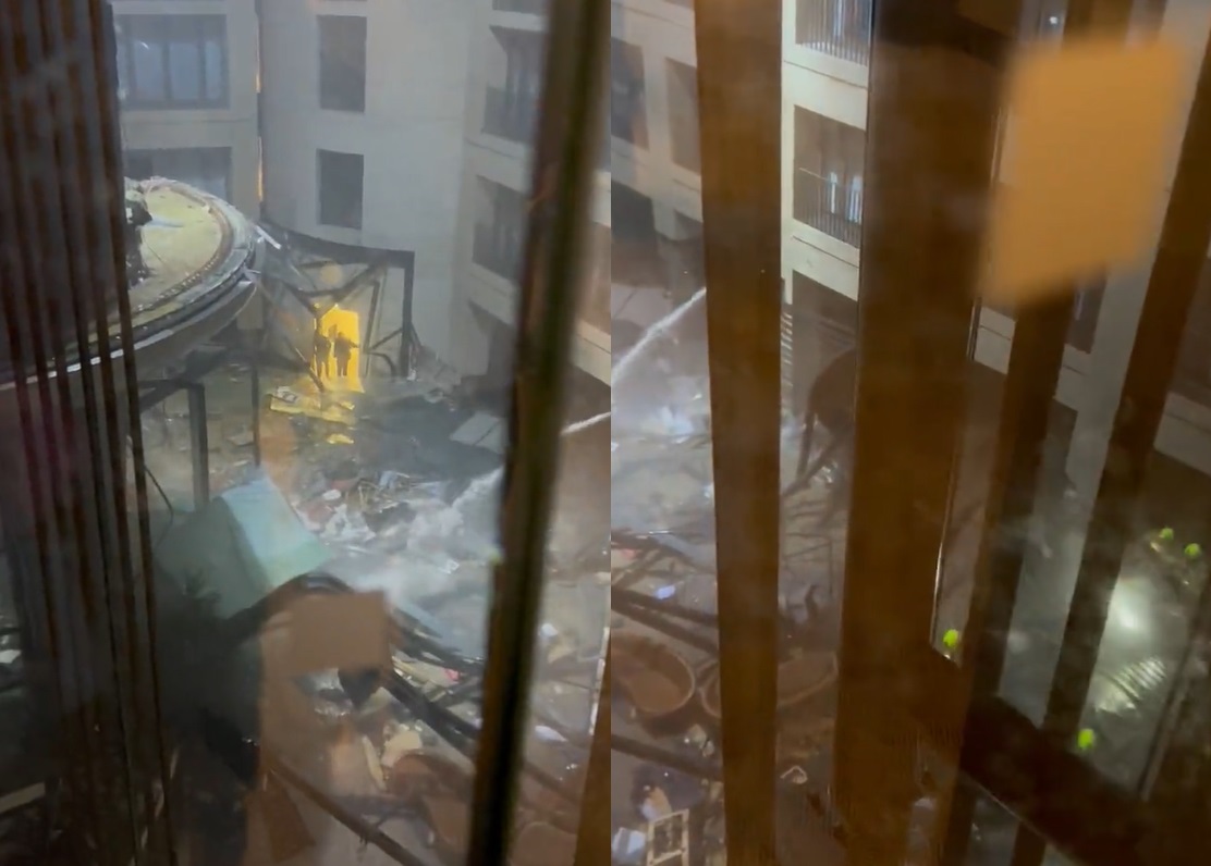 Agrego que "debido a la alta presión del agua del acuario, al reventar se llevó por delante un montón de objetos, que ahora están esparcidos por la calle".