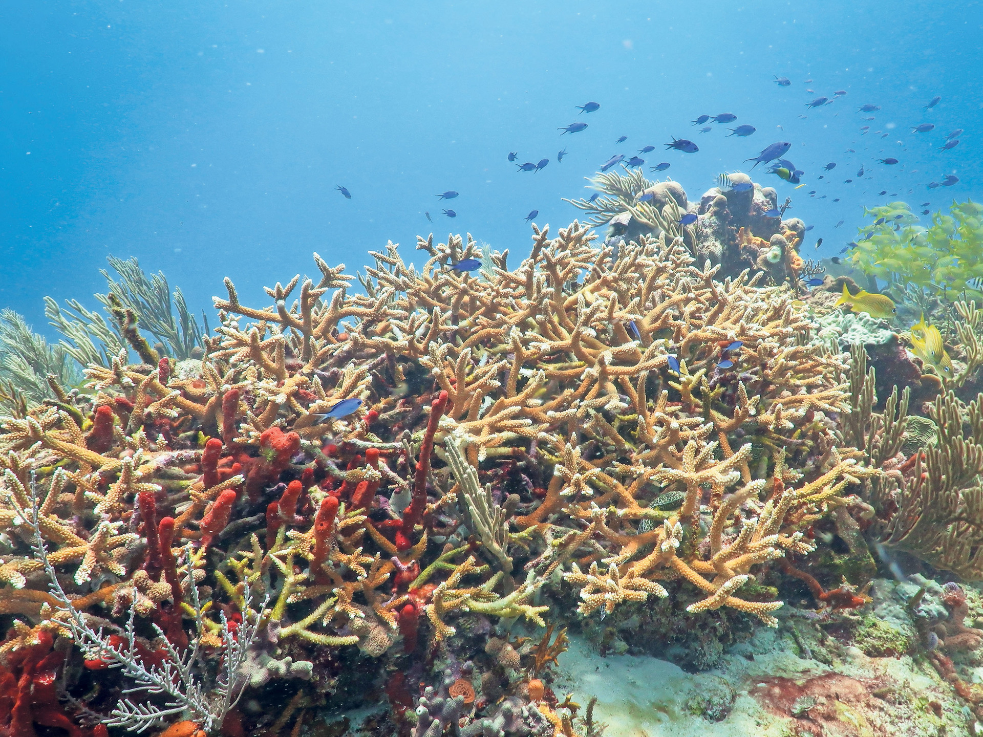 A fin de repoblar sitios afectados por el blanqueamiento de colonias de coral, la Comisión Nacional de Áreas Naturales Protegidas (Conanp) habilitó, desde hace varios años, viveros con Cuerno de alce, una de las especies más importantes en el Caribe y hábitat de langostas o de peces loro, estos últimos, creadores de arrecife.
