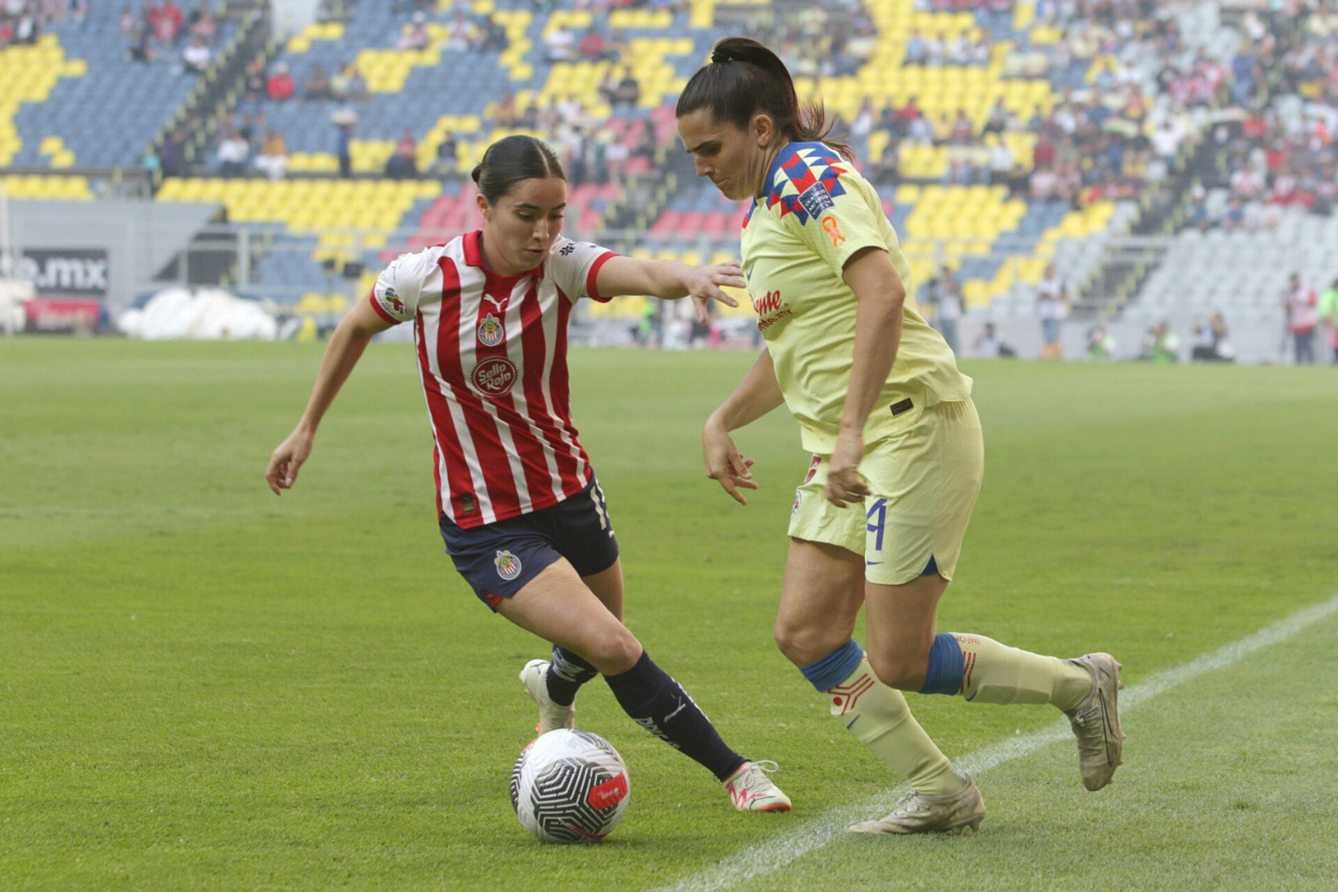Kiana Palacios y Andrea Pereira anotaron por las Águilas del entrenador español Ángel Villacampa y Casandra Montero lo hizo por las Chivas del estratega argentino Antonio Spinelli, que jugaron 27 minutos con una mujer de menos en la cancha.