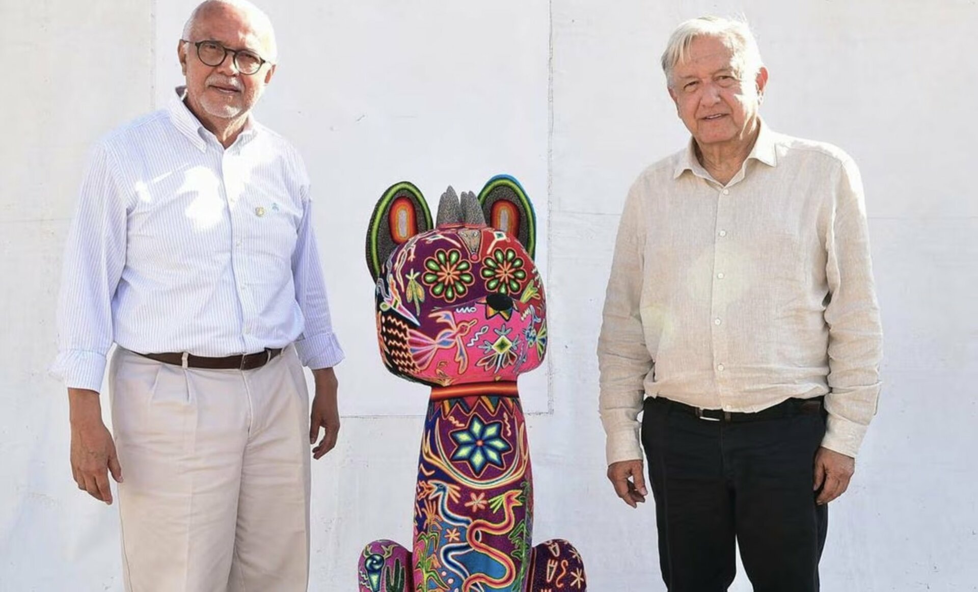 Este domingo por la tarde, el mandatario se reunió con el gobernador de Nayarit, Miguel Ángel Navarro Quintero (Morena), con quien presumió una fotografía en la cual se ve a los mandatarios junto a una pieza de arte de la cultura Cora.
