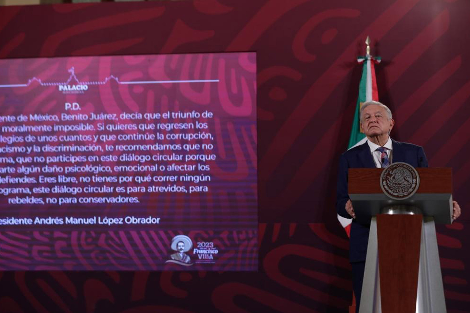 "Eres libre, no tienes por qué correr ningún riesgo. Este programa, este diálogo circular, es para atrevidos, para rebeldes, no para conservadores". Firma el presidente Andrés Manuel López Obrador.