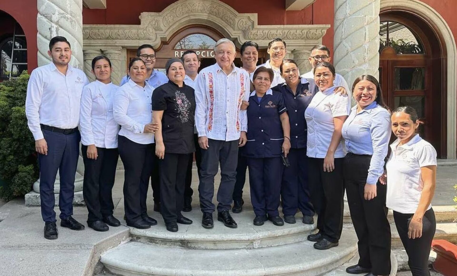 Por medio de sus redes sociales el mandatario subió un mensaje y una fotografía con trabajadores del hotel donde pernoctó como parte de su gira de trabajo por el proyecto del Tren Interoceánico del Istmo de Tehuantepec.