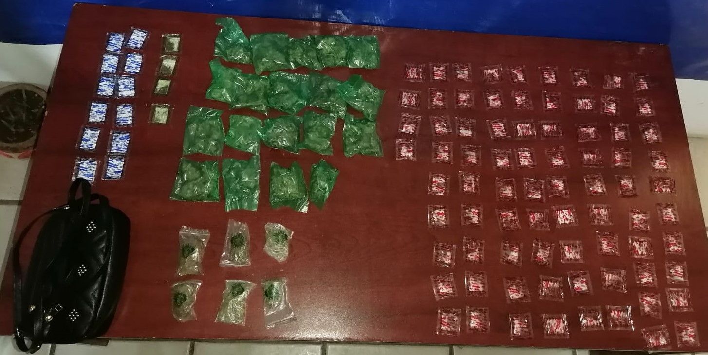 Los hechos se registraron en la calle India, de la colonia Leticia Herrera, en la ciudad de Gómez Palacio, al llevar un reconocimiento del área se encontró una bolsa de mano color negro y al inspeccionarla se encontró en su interior 19 bolsas de plástico color verde, con hierba verde seca con las características de la marihuana; seis bolsas de plástico transparente con el mismo enervante; 78 bolsas de celofán con vivos rojos y 12 bolsas de celofán con vivos azules, que contenían polvo blanco semigranulado con las características del 'cristal'.