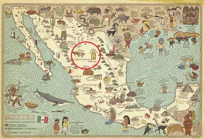 La Laguna no se queda atrás, pues en el mapa figuran las ciudades de Torreón y Gómez Palacio, representadas por la Puerta Amarilla y un par de vacas.