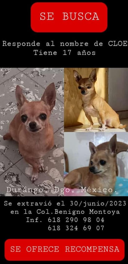 La familia de una perrita chihuahua está pidiendo el apoyo de los duranguenses para encontrarla, ya que necesita seguir su tratamiento.