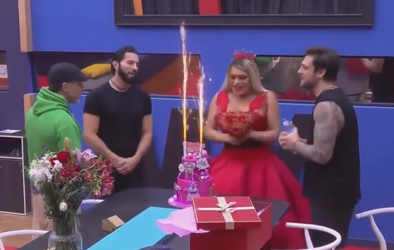 Los participantes le cantaron las mañanitas a Wendy acompañados de un pastel decorado con imágenes de La Perdida, además llevaron una piñata en forma de Wendy Guevara, pero eso no fue todo porque la influencer recibió un vestido rojo como de quinceañera, con lo que pudo festejar.