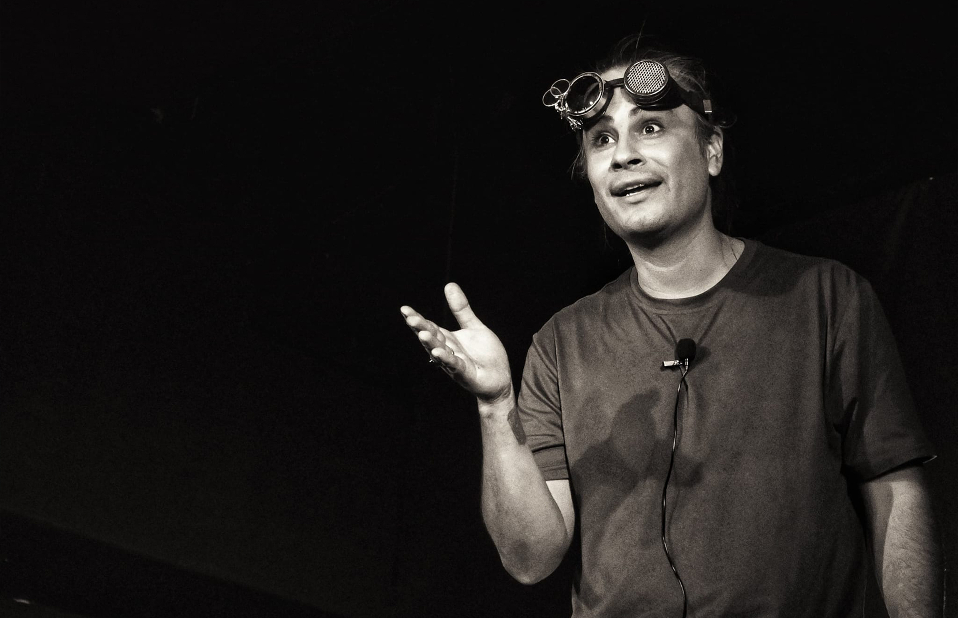 “Mr. Luciérnaga” es una obra de teatro unipersonal que presenta a un personaje dual, el cual convive y conflictúa entre sus dos personalidades.