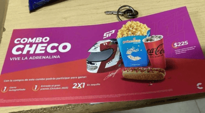 El piloto mexicano, Sergio Pérez, tendría su propio combo de cine. Y es que, a través de redes sociales, se viralizó una imagen del paquete que vendería la empresa Cinépolis durante las vísperas del Gran Premio de México.