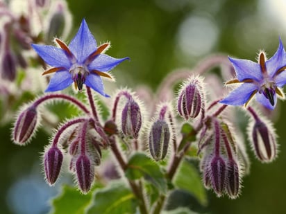 La antocianina, un antioxidante, está en los tonos azul y púrpura de las violas o borraja.