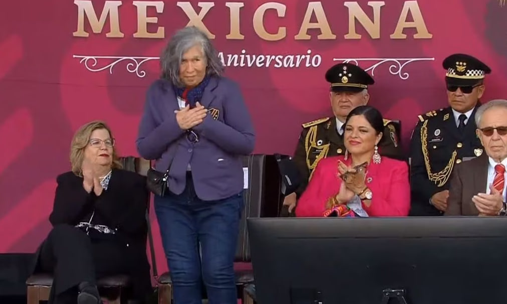 Este lunes 20 de noviembre, María Estela Ríos, consejera jurídica del Ejecutivo Federal y propuesta en la terna para ser la próxima ministra de la Corte (SCJN) por el presidente Andrés Manuel López Obrador, se encuentra en el presídium principal en la ceremonia del 113 aniversario de la Revolución Mexicana, que se realiza en el Zócalo de la Ciudad de México.