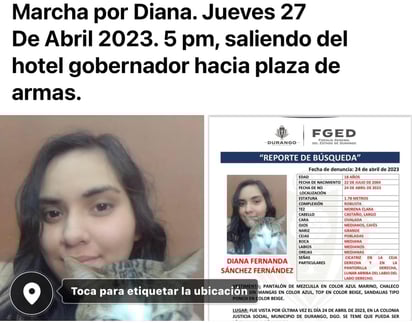 Convocan a marcha por Diana Fernanda, joven que desapareció el lunes en Durango