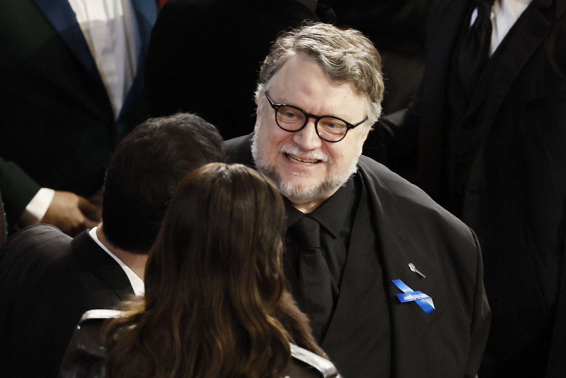Entre los actores que llevaron el moño azul se encontraba Guillermo del Toro. El mexicano fue el primer galardonado de la celebración, pues ganó una estatuilla a la Mejor Película Animada por "Pinocho".
