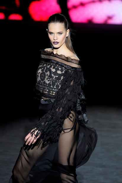 Torretta vuelve a trabajar el cuero y demuestra su destreza con este material en un vestido corto minimalista con impecables cortes a cuchilla. "El cuero es un material que me gusta trabajar, tiene una vejez muy buena y perdura", concluye Torreta, quien recuerda que su firma es moda de autor y por lo tanto: "apuesto por la calidad tanto en el tejido como en el patronaje y en la confección".