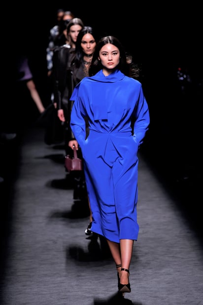 Toretta presentó una serie de prendas con costura y patronaje esmerado como se ha visto en vestidos drapeados y con sofisticados pliegues.