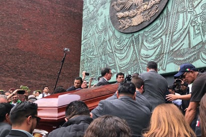 El féretro con el cuerpo de Muñoz Ledo llegó al recinto legislativo de San Lázaro en punto de las 13:03 horas.