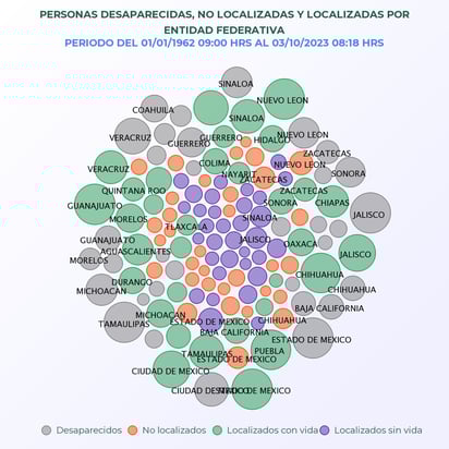 Durango tiene un registro de 930 personas desaparecidas o no localizadas, en el periodo del primero de enero de 1962 al 2 de octubre de 2023, de acuerdo al Registro de la Comisión Nacional de Búsqueda.