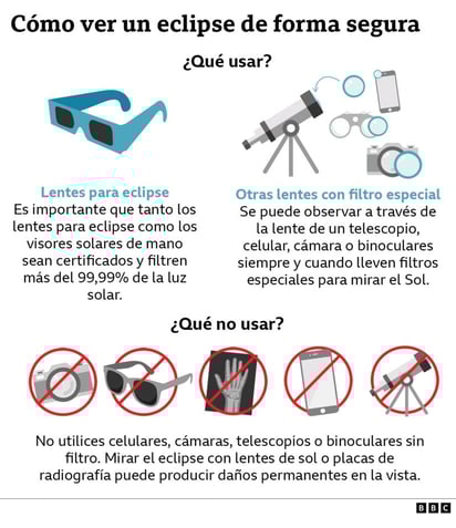 Para lograr observar un eclipse solar anular se requiere de protección para los ojos, no se puede observar directamente porque la radiación directa a los ojos podría afectarlos o causar ceguera, por lo que es necesario usar gafas especiales.