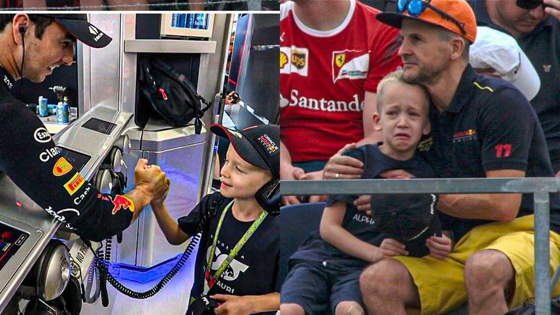 Esta mañana durante el Gran Premio de Hungría, las cámaras de transmisión captaron a un pequeño aficionado de "Checo" llorando tras el choque que sufrió el tapatío en la P1, en el cual Pérez no salió lastimado, aunque su RB19 sí.