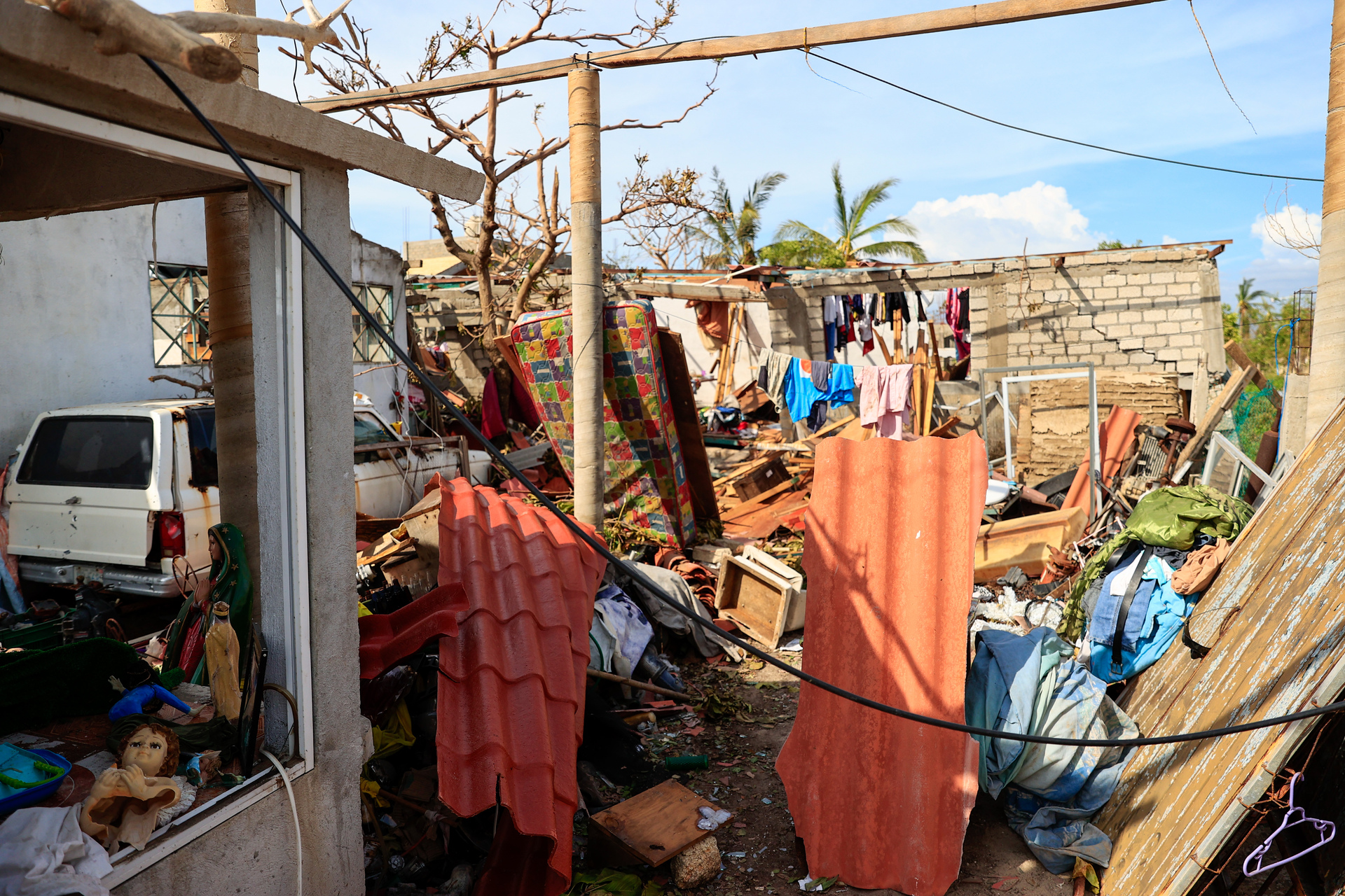 Una vez que terminó el huracán, salimos a buscar ayuda. No había electricidad, líneas de teléfono, internet, agua ni servicios de wi-fi. Las calles y avenidas estaban totalmente inundadas, los árboles y palmas caídas y las albercas sucias. Era miércoles por la mañana.