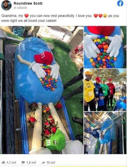 Pero lejos de que todo fuera tristeza, la abuela se encargó de dejar el mejor recuerdo incluso en el momento póstumo, pues fue enterrada en un ataúd personalizado con chocolates de la marca M&M´s.
