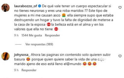 "Al fin estoy de acuerdo en algo con esta Doña", "Totalmente mi apoyo Laura Bozzo, se tenía que decir y se dijo", "Claramente Laura dijo la verdad y que a nadie le salpiqué", "Él se fue por decisión propia, pero es bien bajo que Clara Chía empezara a verse con él cuando él todavía estaba con Shakira esto es muy bajo y es si da asco", son sólo algunos de los comentarios que se pueden leer.