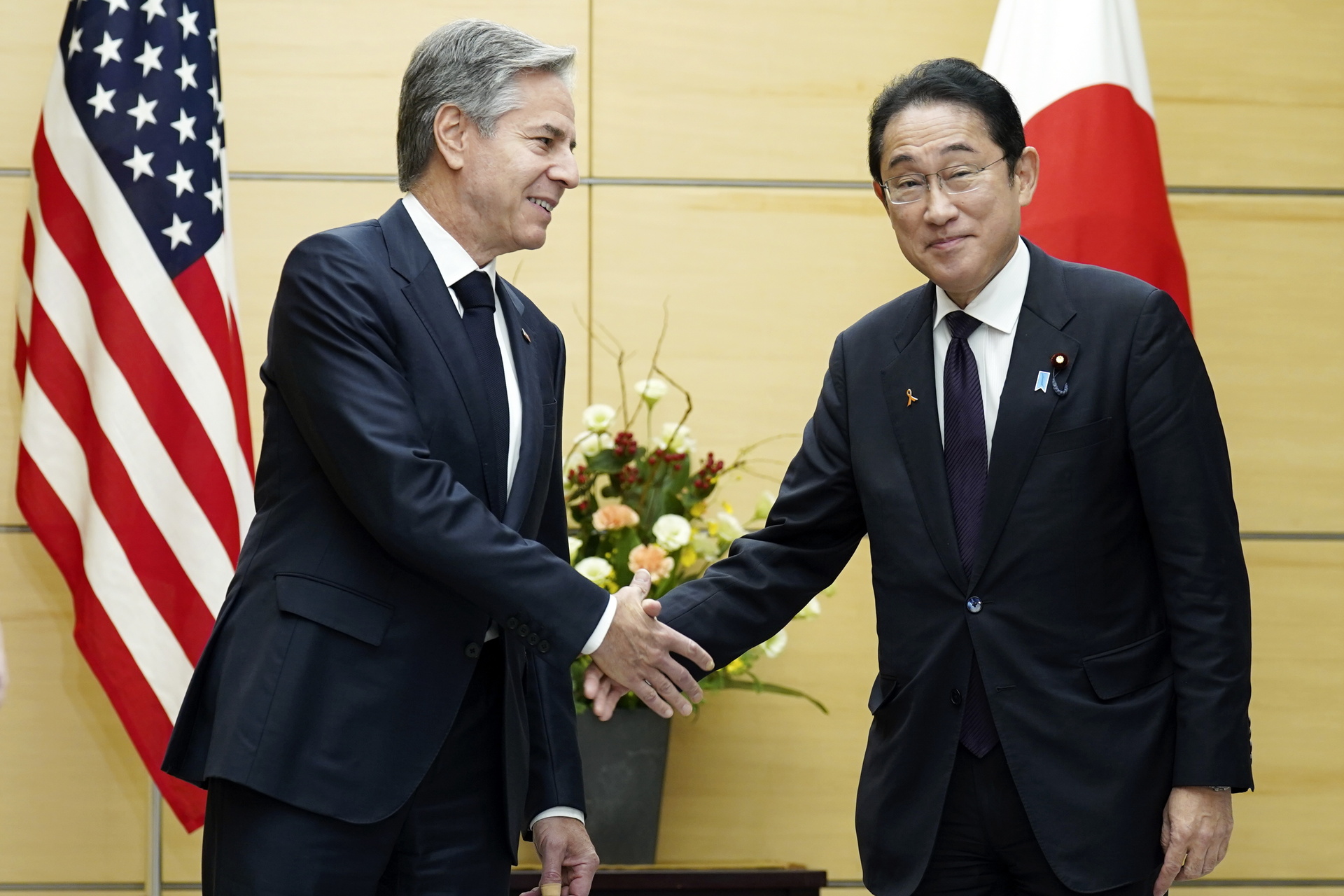 El primer ministro japonés también trasladó a Blinken la necesidad de "mantener la unidad del G7" no solo por el conflicto entre Israel y Palestina, sino también por la situación en Ucrania y el Indo-Pacífico.