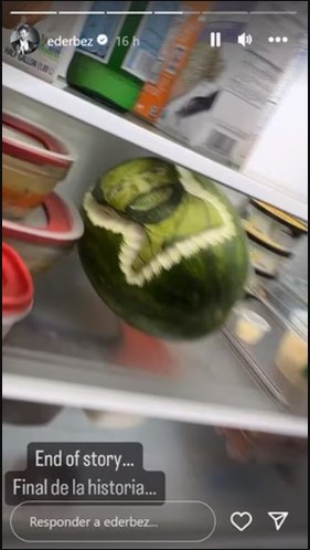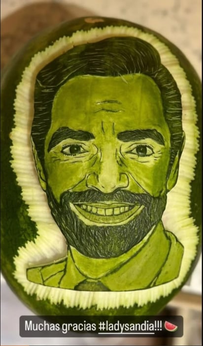 Y es que, la mujer a quien decidió nombrar como "Lady Sandía", le regaló una pieza de esta fruta, pero con su rostro tallado en ella, gesto que el comediante agradeció enormemente: "Chequen esto, ahí está tallada mi cara en una sandía, pero vean el trabajo, el detalle, es una obra de arte; o sea, si la talló en una sandia", dijo en un video que publicó en sus historias de Instagram.