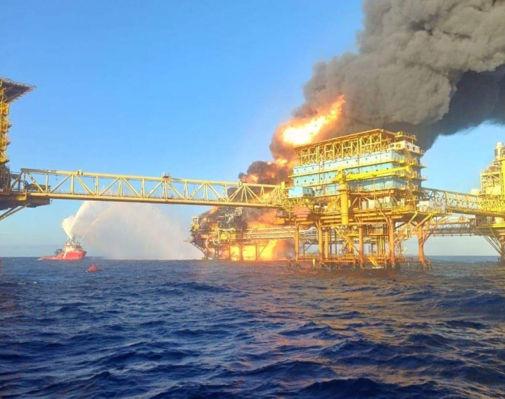 La explosión de la plataforma petrolera Nohoch-Alfa se registró la madrugada del 7 de julio de 2023, a 80 kilómetros al noroeste de Ciudad del Carmen, Campeche.