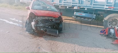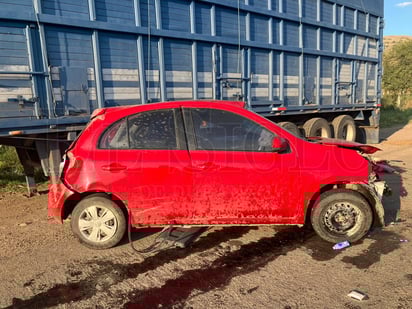 Luego del primer impacto el carro de la marca Nissan, línea March, dio varios tumbos hasta terminar con las llantas en el pavimento y junto a una plataforma de tráiler.