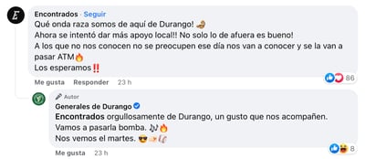 Ante tal respuesta, músicos duranguenses expresaron su apoyo al club, agradeciendo la iniciativa por abrir espacios y apoyar el talento local, y de la misma manera, expresaron su respaldo a la agrupación musical, deseándoles la mejor de las suertes y que realizarán un gran show.
