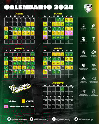 ¡Hay juego! Generales de Durango presenta su calendario oficial para la temporada 2024 en la LMB