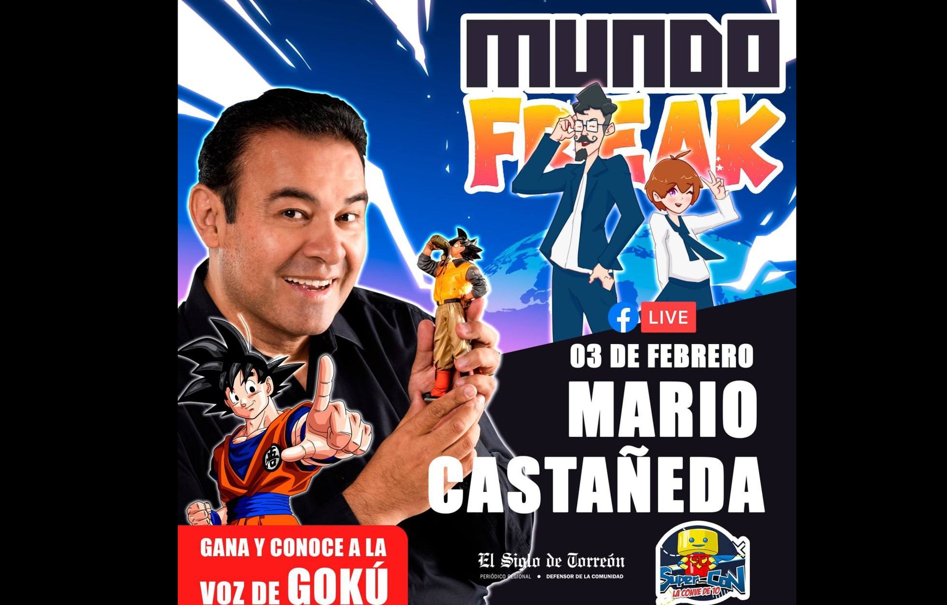 Este fin de semana se llevará a cabo en la La Laguna la Super-Con, convención de anime y cómics que tiene como invitado principal al actor de doblaje Mario Castañeda, y El Siglo de Torreón te invita a ganar la oportunidad de conocerlo y conseguir un saludo de su parte.