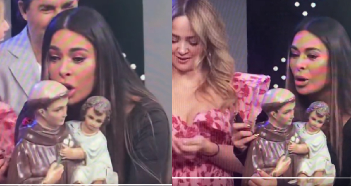 Por su parte, Galilea Montijo realizó el ritual de la loción de amor, la cual consistía en rociarse ella misma en todo el cuerpo y luego abrazar a San Antonio.