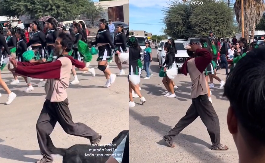 Un hombre ha acaparado miradas en redes sociales luego de unirse inesperadamente a un baile escolar que se realizaba en la calle como parte de un desfile, pues en cuestión de segundos el nuevo integrante se aprendió los pasos de la coreografía.