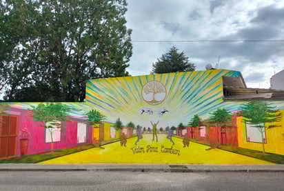 Un mural de aproximadamente 20 metros quedó instalado en las calles de Jardines de Durango, una pintura de gran formato que hace alusión a la recuperación de personas que cumplen un proceso de rehabilitación.