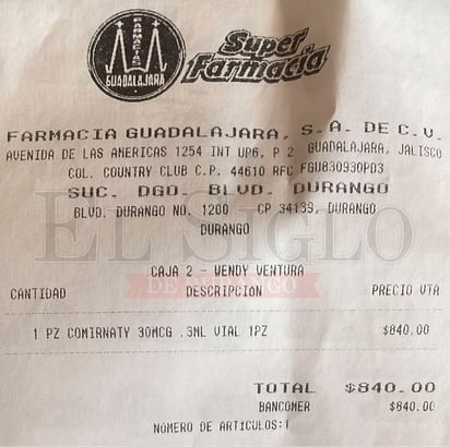 Sin embargo, fue la farmacia ya señalada, ubicada en el bulevar Durango, la primera que empezó a vender esta vacuna y la pieza Comirnaty 30mcg, de 3 mililitros, que tiene un precio de 840 pesos.