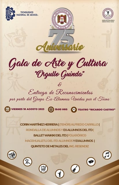 Invitan a Gala de Arte y Cultura 'Orgullo Guinda' por los 75 años del ITD