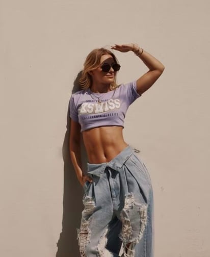 Dando ejemplo de su capacidad para mezclar y balancear a la perfección todos los elementos de un outfit, la actriz rusa optó por combinar sus jeans cut out con cadena con un top completamente blanco, que dejó al descubierto su marcado abdomen.