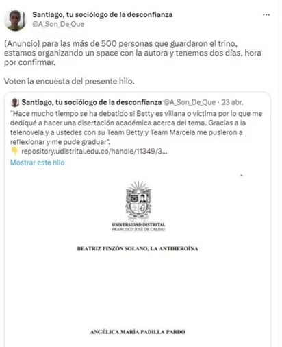Con la tesis, Angélica Padilla obtuvo el grado de licenciada en Humanidades y Lengua Castellana. Por supuesto, la creativa propuesta le valió decenas de comentarios positivos entre los fans del melodrama.