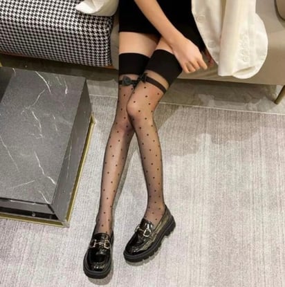 Para acentuar la sensualidad de su outfit, Aguilar lució unas medias por encima de las rodillas con terminación acanalada. Los lunares que luce son de gran tamaño, pero también se pueden llevar diminutos. El polka dot no pasa de moda.