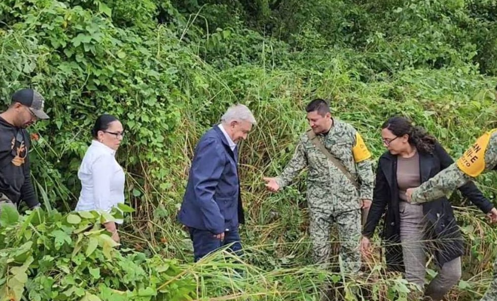 Fue en la comunidad llamada "kilómetro 39" donde debido al lodo que impedía el paso del vehículo militar el Mandatario federal tuvo que cruzar a pie.