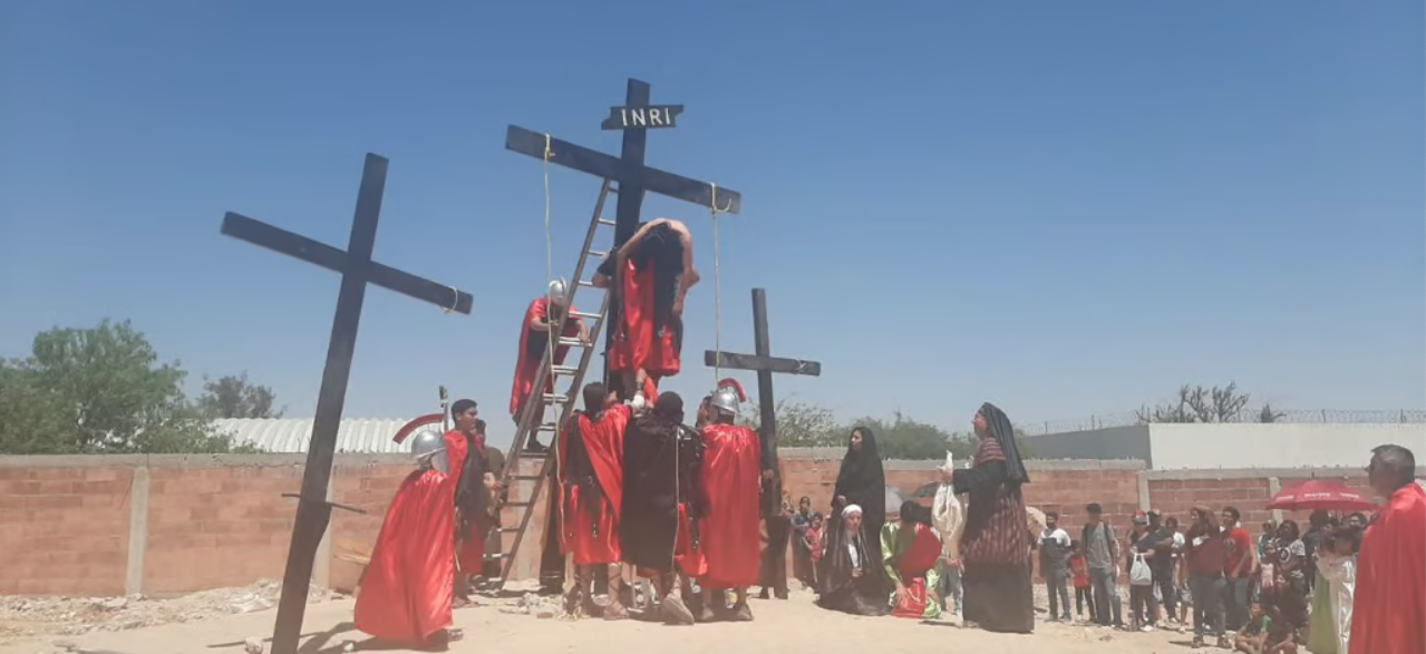 La multitud siguió por la calle Allende hasta llegar a la colonia San Isidro donde se encuentra la Iglesia del Cerrito como se conoce popularmente a la Iglesia de Nuestra Señora de Guadalupe, lugar donde se realizó la crucifixión y muerte de Jesús. En total 15 escenas o “estaciones” dieron vida a una tradición de la fe católica que busca perpetuar su labor de evangelizar mostrando al mundo lo que considera el mas grande acto de amor y sacrificio por la humanidad.