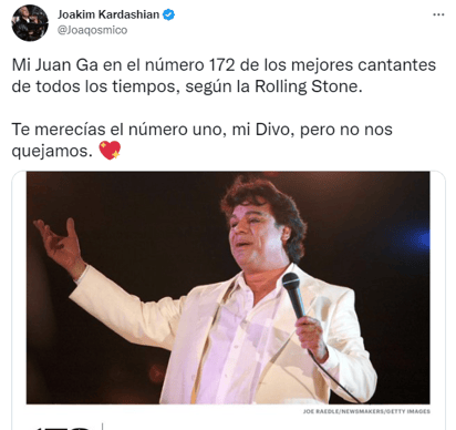 El “Divo de Juárez”, Juan Gabriel, fue colocado en el número 172 bajo una descripción en la que resaltan su carisma y la habilidad de componer, mientras que su gran amiga, Rocío Dúrcal aparece en la posición 139: “tenía una manera de unir la cálida suavidad de su mezzo soprano con un intenso y oscuro canto en los aspectos más destacados de su carrera”.