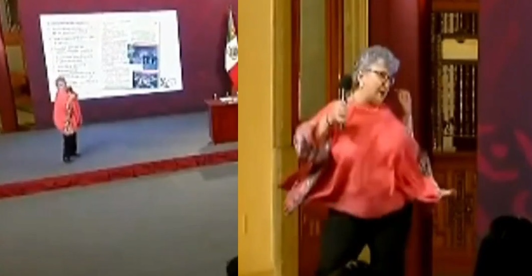 La mañanera volvió a convertirse en escenario de baile luego de que la maestra normalista Ana María Prieto Hernández, explicara de una manera peculiar que la nueva escuela mexicana no apuesta por el individualismo.