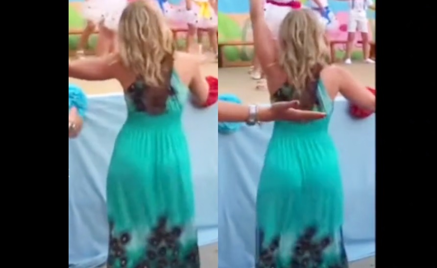 Frente al escenario y luciendo un vestido largo color verde, la maestra también sacó sus pasos de baile para guiar a los más pequeños en la coreografía.