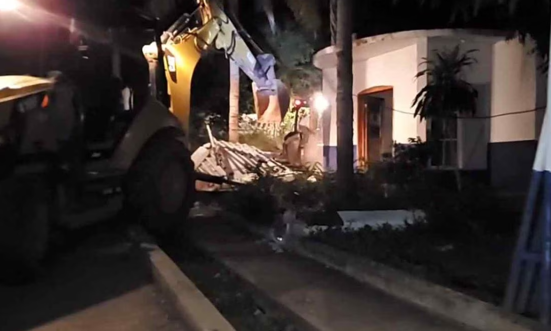 Alrededor de las 9 de la noche, una turba de pobladores y transportistas llegaron a las instalaciones del MP con dos máquinas pesadas y las comenzaron a demoler.