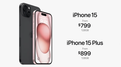 Los precios de este nuevo teléfono son 799 dólares para el iPhone 15 y 899 dólares para su versión Plus.