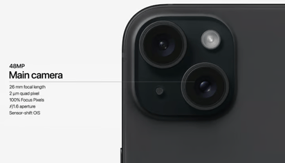 El iPhone 15 y su versión Plus, cuentan con una cámara principal de 48MP.