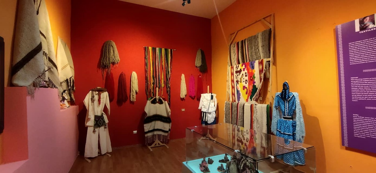 Enseguida está la sala de textiles, donde se están materiales propios de la étnica hiuichola y o'dam, así como telares y vestuarios. Adjunta está el área de cerámica de artesanos de Durango.