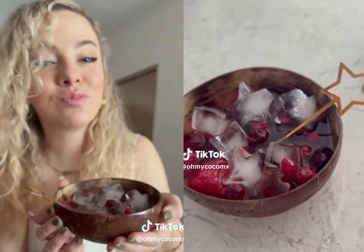 Identificada como @ohmycocomx, la 'tiktoker' compartió desde su perfil la receta que se basa en frutos rojos, hielo en forma de estrellas y agua de coco en un tazón.